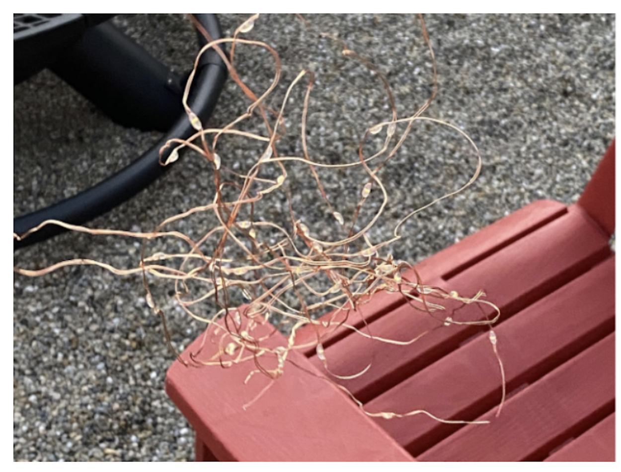 I went back inside and grabbed my new strand of lights and thought to myself, “remember Carisa, if you aren’t careful, these can very easily get a knot in them since they are fragile copper wire and it takes so long to fix.” Yes, I had already had this happen a couple of times prior. So, I started placing the wire and I knew that I would have just enough to encompass the entire area I had envisioned. As I was halfway in about 10 minutes later, it began to rain. Ugh, I really wanted to get in the hot tub. Why did I start this project? It could have waited. Oh well, it’s not pouring, I will just finish this quickly and then still get in for the soak. A little rain won’t scare me away. As you can probably guess, my focus most likely shifted to moving quickly and less on the caution of a knot.